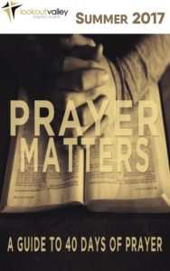 As followers of Jesus, we know that prayer is essential and valuable for our relationship with Him. We know we need to be praying more frequently, with more energy, and with greater persistence; but too often, we neglect this core component of our Christian walk. This summer, in conjunction with Pastor Troy’s sermon series Prayer Matters, we have assembled a 40-Day Prayer Guide that will aid and direct our prayer life – both as individuals and as a corporate body.